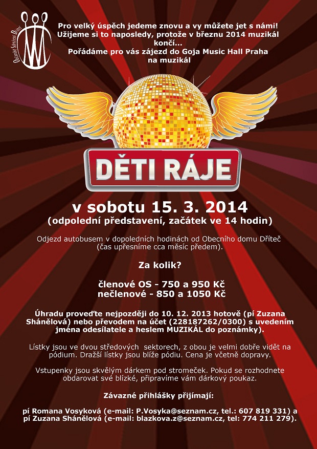 | 15. 3. | Muzikál - Děti ráje | plakát + foto manager: Z. Shánělová R. Vosyková |