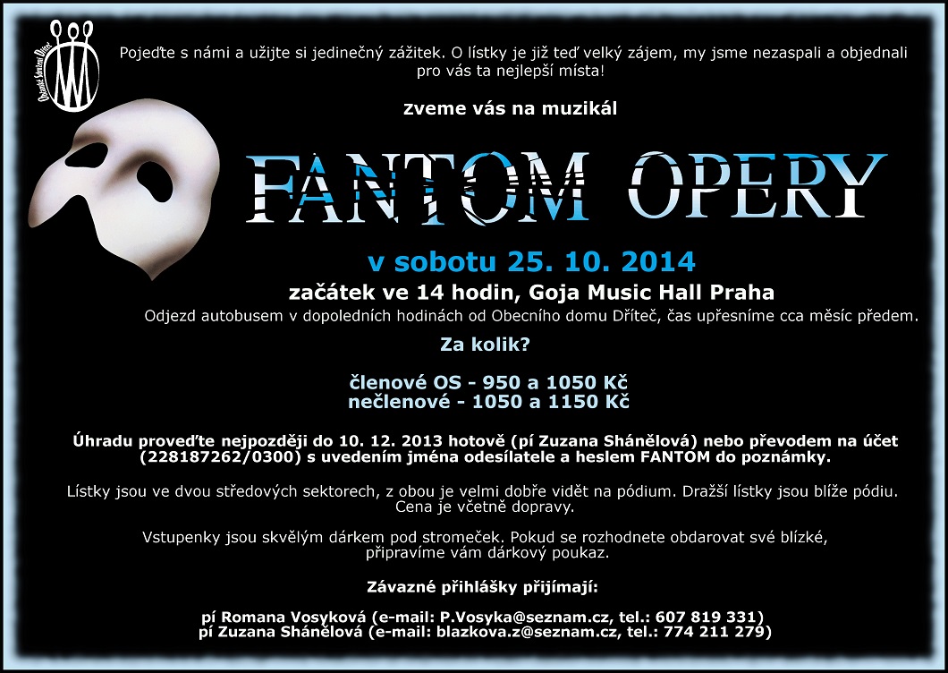 | 25. 10. | Muzikál - Fantom opery | plakát manager: R. Vosyková Z. Shánělová |
